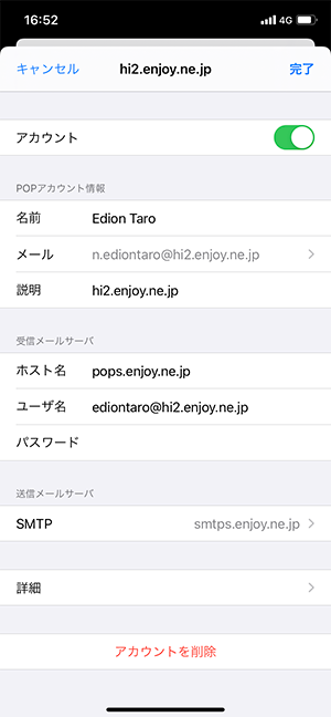 [完了]をタップし、アカウント名をタップします。